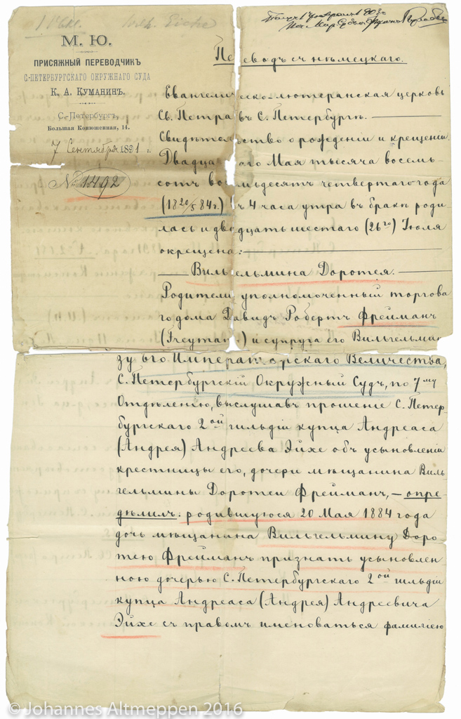 Die Kalender-Reform Lenins hatte auch Auswirkungen in ganz persönliche Bereiche. Das zeigt das Beispiel der am 20. Mai 1884, 4 Uhr früh, in Petersburg geborenen Wilhelmine Dorothea Freymann. Wilhelmine Dorothea erhält am 7. Oktober 1922 vom Polizeiamt Leipzig den Personalausweis Nr. 449. Und im Alter von 38 Jahren werden der in Petersburg geborenen mit Siegel und Unterschrift zwei Geburtstage bescheinigt: Unter "Geboren am" im Jahr 1884 stehen der 20. Mai und der 2. Juni. Mit Aushändigung ihrer "Einbürgerungsurkunde" am 17. September 1923 hat sie "die Staatsangehörigkeit in Sachsen durch Einbürgerung erworben und ist damit Deutsche geworden". Ihre beiden Geburtstage hat sie behalten – wobei der 2. Juni nachträglich eingetragen wurde.